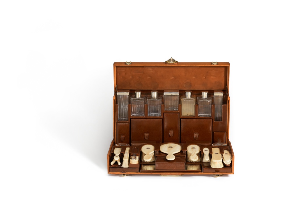 Sono parte dell’evoluzione dell’estetica maschile: possono essere interpretate così le sale dedicate al mondo della bellezza nella mostra Volez- Voguez- Voyagez (un omaggio a Louis Vuitton, al Grand Palais fino al 21 febbraio). Creazioni a cavallo tra gli Anni Dieci e Venti in cui trovavano posto infiniti tipi di accessori.