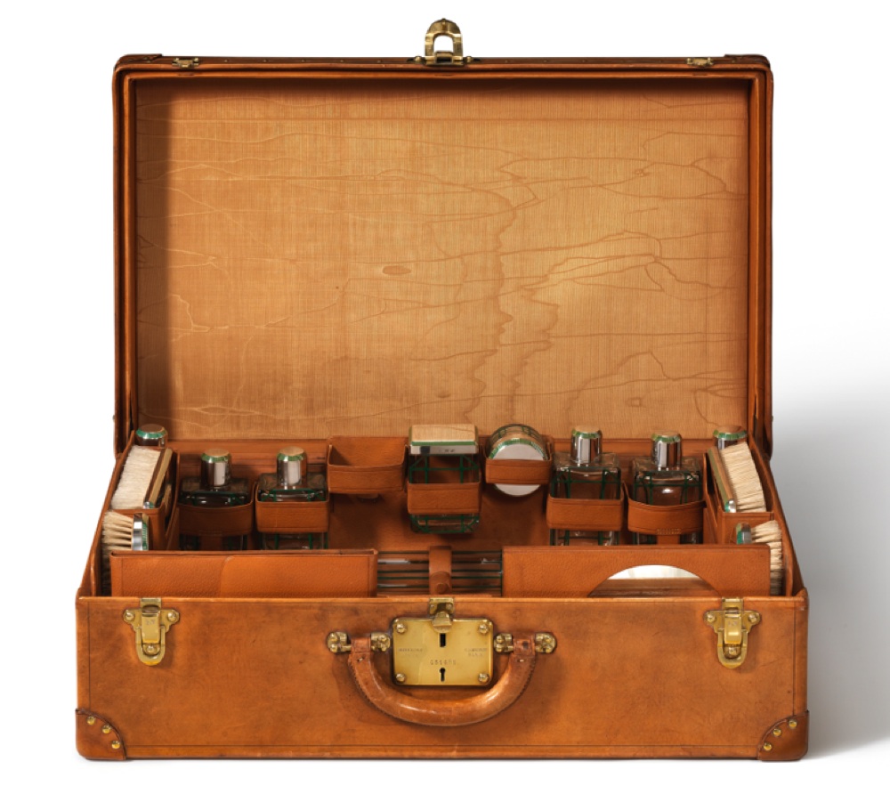 Gaston-Louis Vuitton, Milano e Roma. Nel 1925 Gaston- Louis Vuitton presentò all’Esposizione Internazionale delle Arti Decorative e Industriali il primo baule beauty-case, Milano: questa prima creazione era destinata alle donne, un vero e proprio scrigno di bellezza con spazzole finemente decorate in avorio e boccette in cristallo. Il successo fu tale anche tra il pubblico maschile che l’accessorio fu declinato anche per gli uomini, Roma, una vera e propria valigetta in cuoio con gli interni in legno, un piccolo specchio tondo e compresa anche di spazzole per la manutenzione degli abiti.