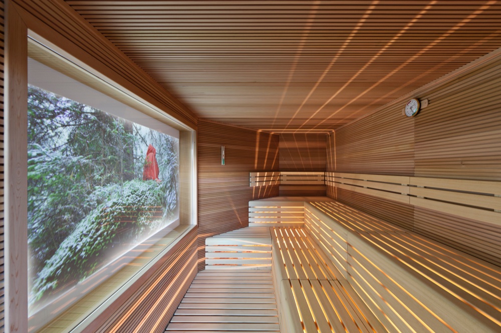 All’interno del percorso wellness sono presenti 8 differenti tipi di saune, tutte costruite e praticate con ingredienti naturali. Quella a base di lavanda e legno nordico aiuta a purificare la pelle e a migliorare le vie respiratorie; per una pulizia epidermica profonda è ideale quella a base di melissa a una temperatura di 45°; erbe alpine e camomilla bollono, invece, in una particolare pentola all’interno di una sauna in legno riscaldato a una temperatura di 50°. Per chi cerca un estremo relax è adatta la Fienile: temperatura media di 45°, il profumo del fieno fresco nell’aria e in sottofondo il rumore dell’acqua. Non può mancare anche la classica sauna finlandese, con una temperatura di 90° e un tasso di umidità del 10%.