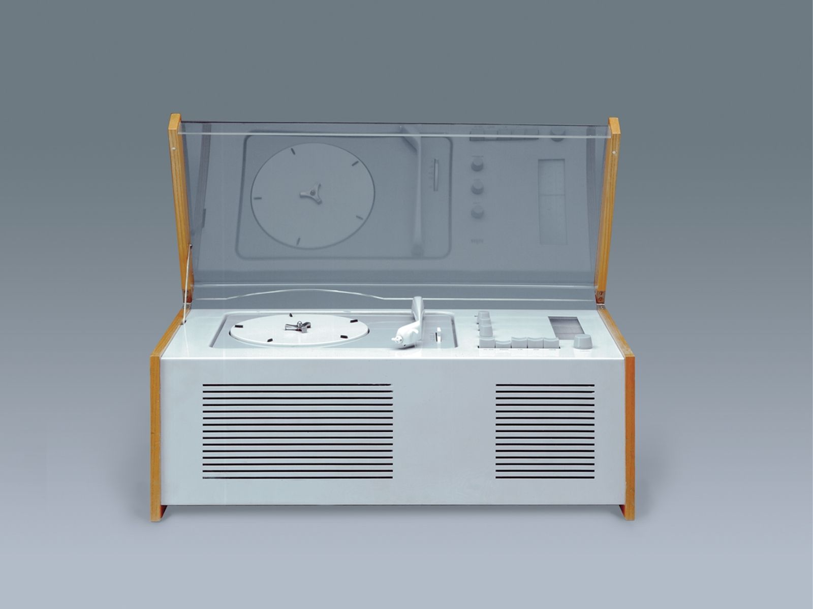 L’SK 4 è una combinazione di radio e fonografo. Era soprannominato “Bara di Biancaneve” per la sua copertura in plexiglass, un materiale pensato all’epoca solo come una novità usa e getta per giocattoli e prodotti di bassa qualità, prima di essere utilizzato per il design industriale da Hans Gugelot e Dieter Rams. E’ in mostra permanente al MoMA di New York come esempio di buon design.