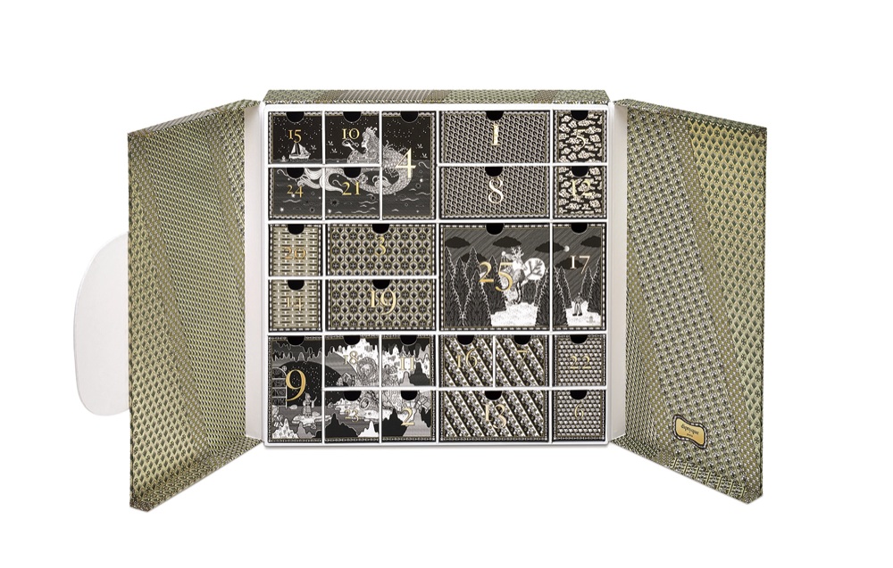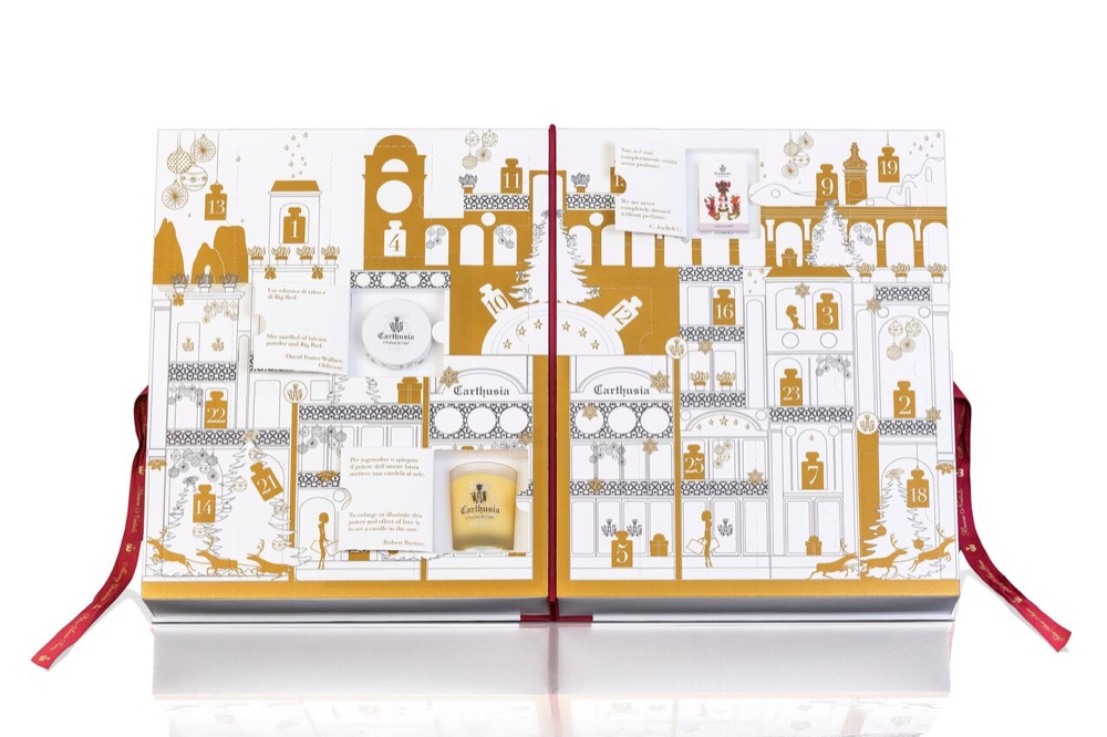 Le foreste nordeuropee e la piazzetta di Capri fanno da sfondo ai Calendari dell’Avvento di diptyque e Carthusia. Nel primo, ogni mini cassetto è decorato con boschi innevati, pattern scandinavi, personaggi delle leggende e ogni mini-cassetto contiene i prodotti storici della maison parigina; profuma invece di note mediterranee quello di Carthusia, con candele, creme e saponi che si nascondono dietro alle 24 caselle che decorano la mitica piazzetta isolana.