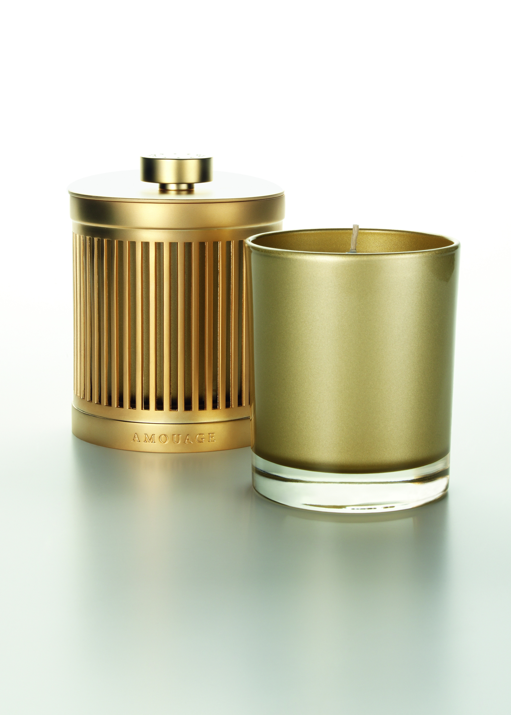 In vetro italiano color oro, la GOlden Candle di Amouage sprigiona sentore di rosa e mughetto.