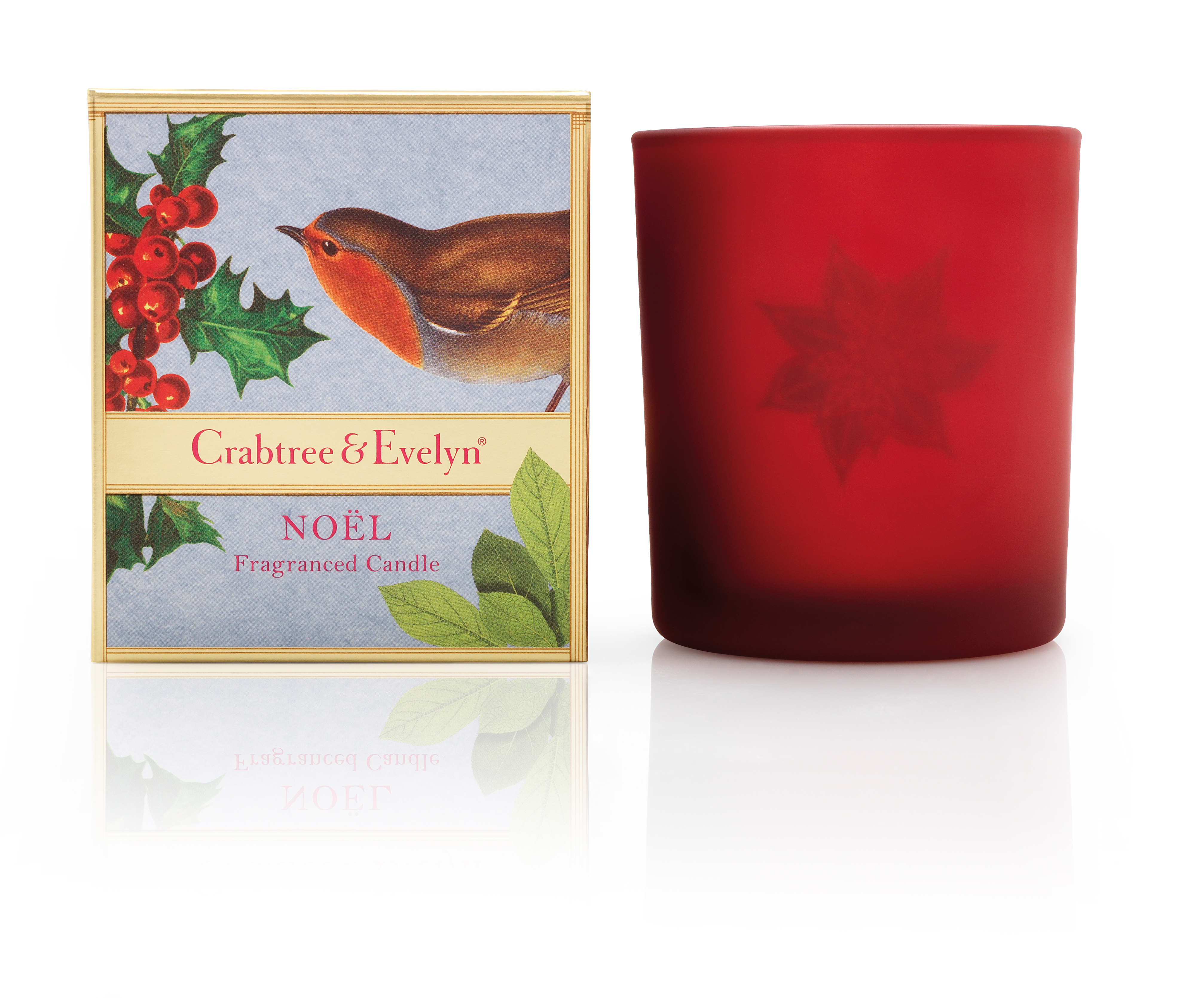 Il bicchiere è rosso Natale e la fragranza ricorda l’abete appena addobbato. Noel di Crabtree&Evelyn