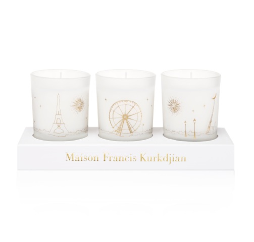 La Parigi di Francis Kurkdjian è disegnata sui vetri della collezione Bougies de Noël della Maison Francis Kurkdjian.