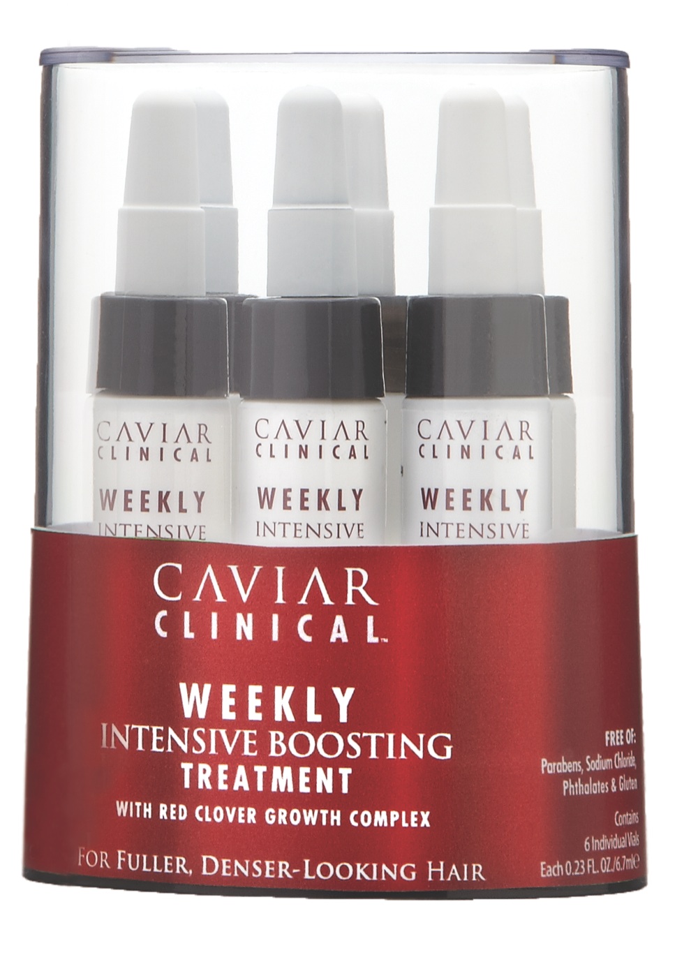 Il Weekly Intensive Boosting Treatment di Caviar Clinic è un trattamento settimanale basato sul complesso di trifoglio rosso che deterge in profondità e va a compensare gli squilibri ormonali che determinano la caduta