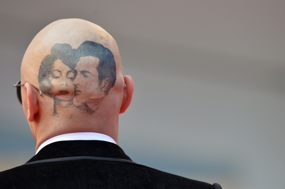 Dopo, rasatura con lametta. Per una scelta così radicale, bastano un rasoio e poi una lametta. Il look non è adatto a tutti, bisogna avere una perfetta forma di ovale. E soprattutto, il carattere per sfoggiare a un red carpet una testa pelata e un tatuaggio.