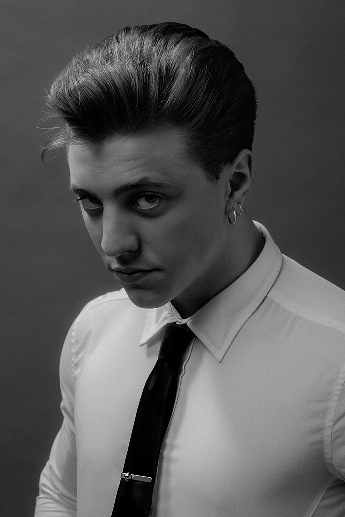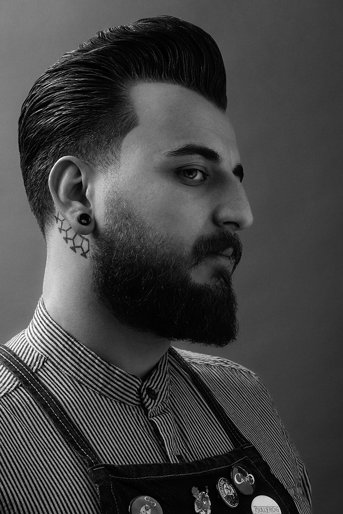 Dal barbiere. “Variazione lunga del classico Slick Pompadour, in una versione più classica i capelli vengono portatati indietro in modo morbido e leggermente spostato lateralmente nella parte alta. Taglio ribelle tipico degli anni della contestazione. La maestria del barbiere sta nel strutturare la forma solo con l’uso sapiente delle forbici, esaltando la bellezza della capigliatura”.