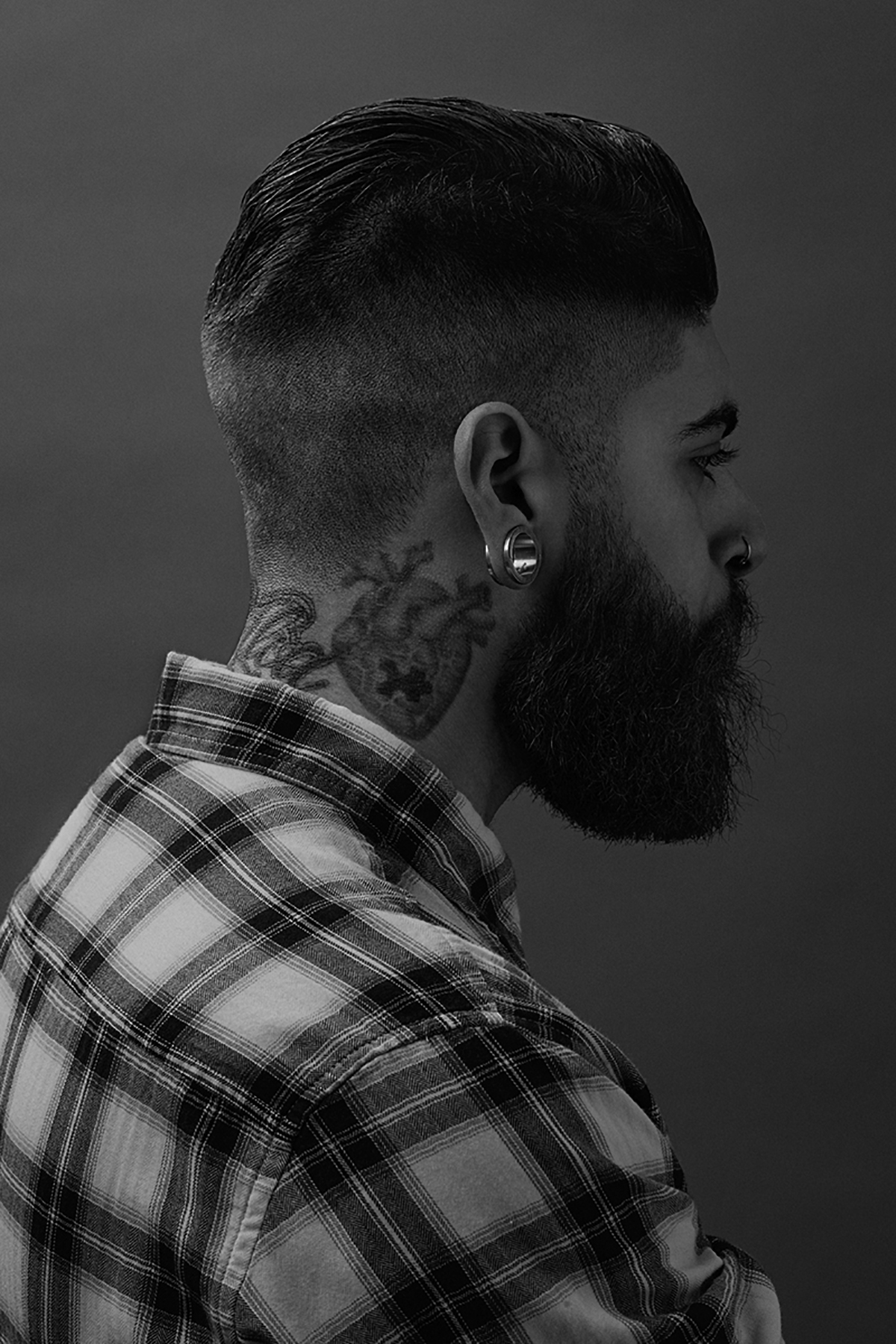 Dal barbiere. “Il Bald Fade è un taglio estremamente in voga nel mondo Urban/Streetwear. Negli anni ottanta è stato un taglio molto in voga fra la Black Culture. I capelli sono regolati a macchinetta con una lunghezza variabile da 0 a 5 mm. Nel caso di una lunghezza di 4/5mm si può forzare la riga laterale a rasoio per conferire maggiore forma la taglio. Per il collo la regola rigida è la sfumatura a zero, l’attaccatura può essere lasciata naturale oppure sagomata a macchinetta”.