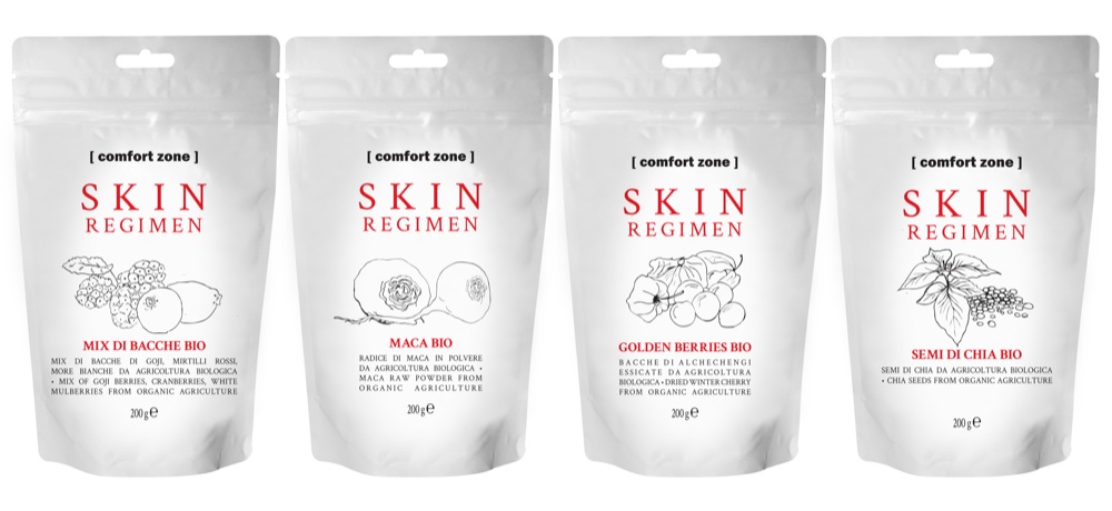 2. Potenza antietà. La bellezza passa anche attraverso quello che si mangia. La linea Skin Regimen di Comfort Zone ha quattro integratori antiossidanti e antiglicazione da mangiare per un’azione antietà: semi di Chia, Maca, Bacche e Golden Berries sono tutti rigorosamente bio. Da sumere senza moderazione.