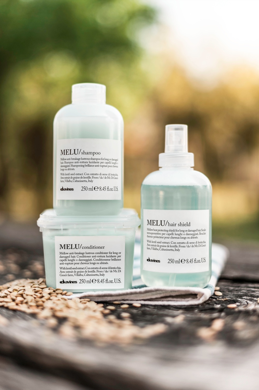 4. Per gli eco-bio oriented. La linea Essential Haircare di Davines lavora con una collaborazione con Eataly, usando materie prime italiane (e bio) cme ingredenti base per gli shampoo e i conditioner. Melu usa estratto di semi di lenticchia di Villalba dall’azione nutritiva e riparatrice per capelli danneggiati.