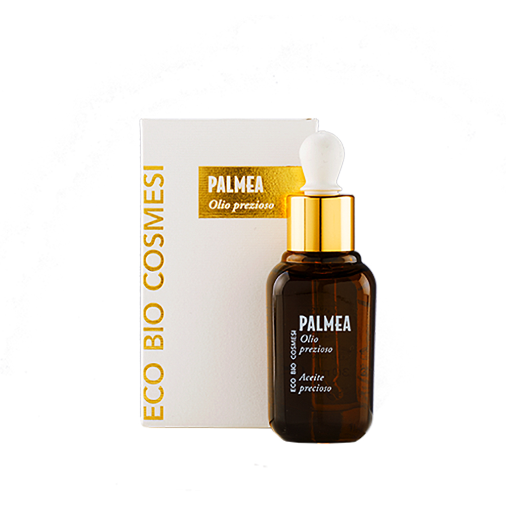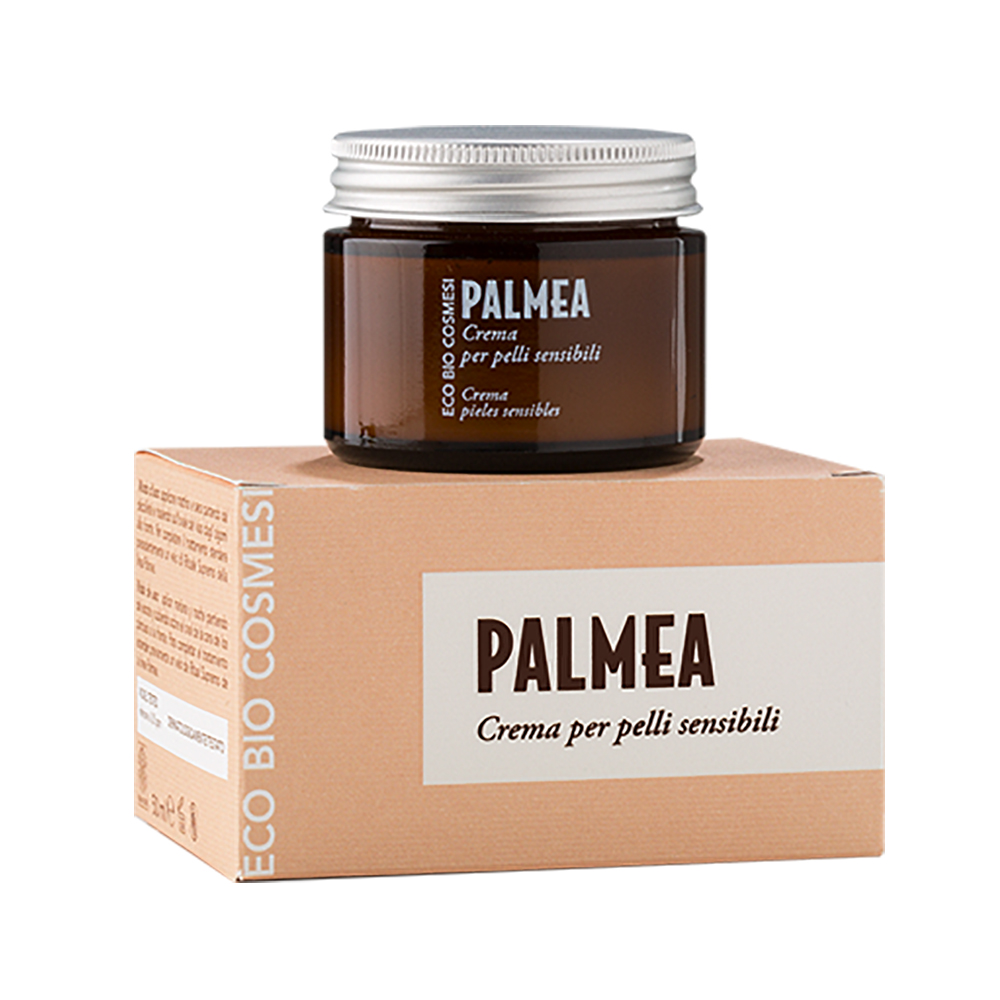 La linea. La linea di cosmetici Palmea è composta diciotto prodotti, tra viso e corpo, cosm-etici naturali, innovativi, biologici, controllati nelle materie prime utilizzate e nei processi adottati. Una linea senza genere, con un pack interno che ricorda le soluzioni galeniche, e uno esterno invece dai colori vivi e pop.