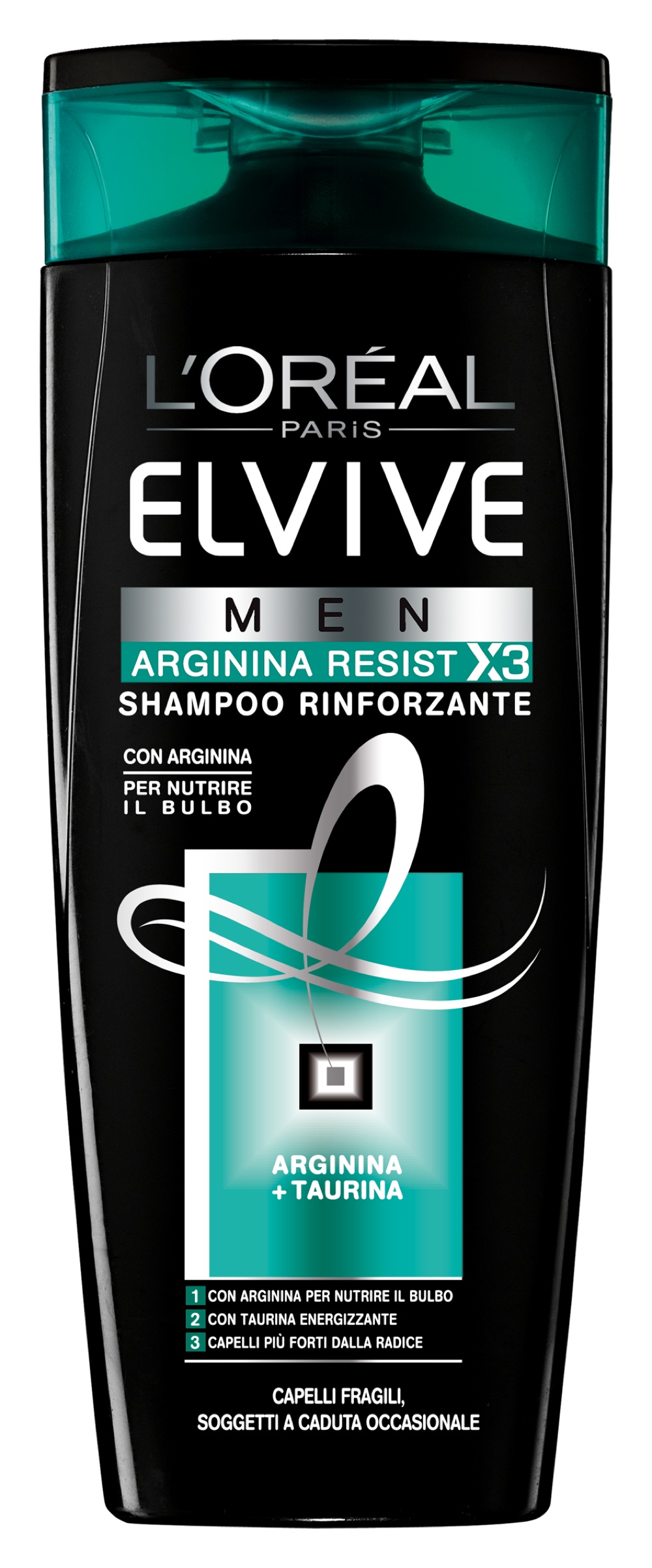 Arginina e Taurina sono i due ingredienti essenziale in Elvive Men Arginin Resist X3, uno shampoo che rinforza il bulbo, stimolando la micro-circolazione e la ricrescita del capello