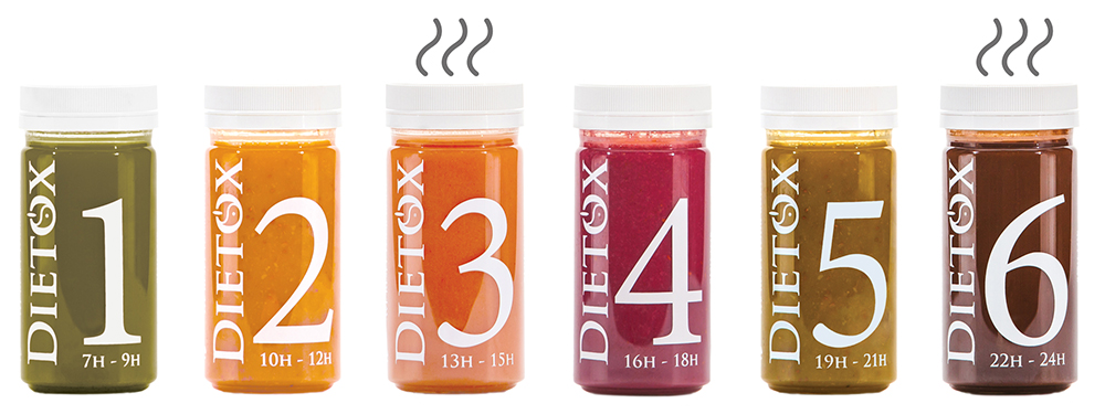 Come funziona. I sei succhi, ordinabili sul sito del marchio, sono da assumere in 24 ore in regime di digiuno o in 48 ore in quello di semi digiuno. Si può optare anche per un programma più strutturato che prevede tre giorni di terapia (6 bottiglie al giorno per un totale di 18).