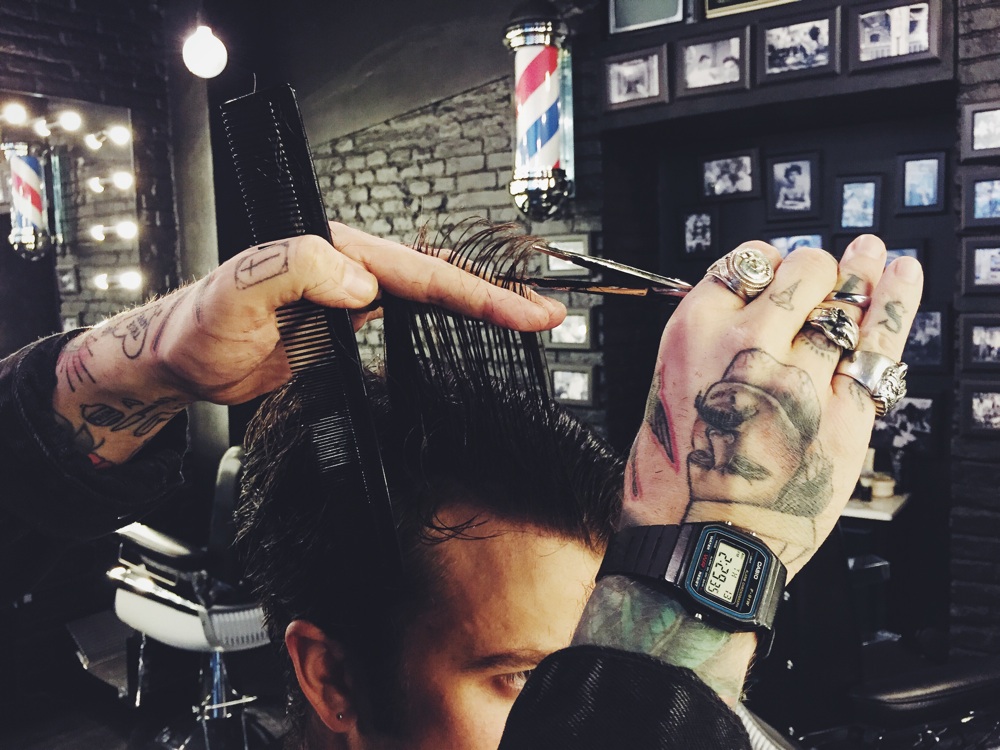 Poltrone in cuoio nero, pareti ricoperte da mattonelle lucide nere, luci da backstage Anni Trenta e sedute da barbiere vintage. Questo è Gum Salon, nel cuore più vivo e all’avanguardia di Milano, dove provare tagli anni Cinquanta o underground, multicolor o sfumature classiche – ognuno pensato a misura del cliente. Per noi propongono tagli storici attualizzati, rappresentati da personaggi iconici dell’arte, del cinema italiano o internazionale.