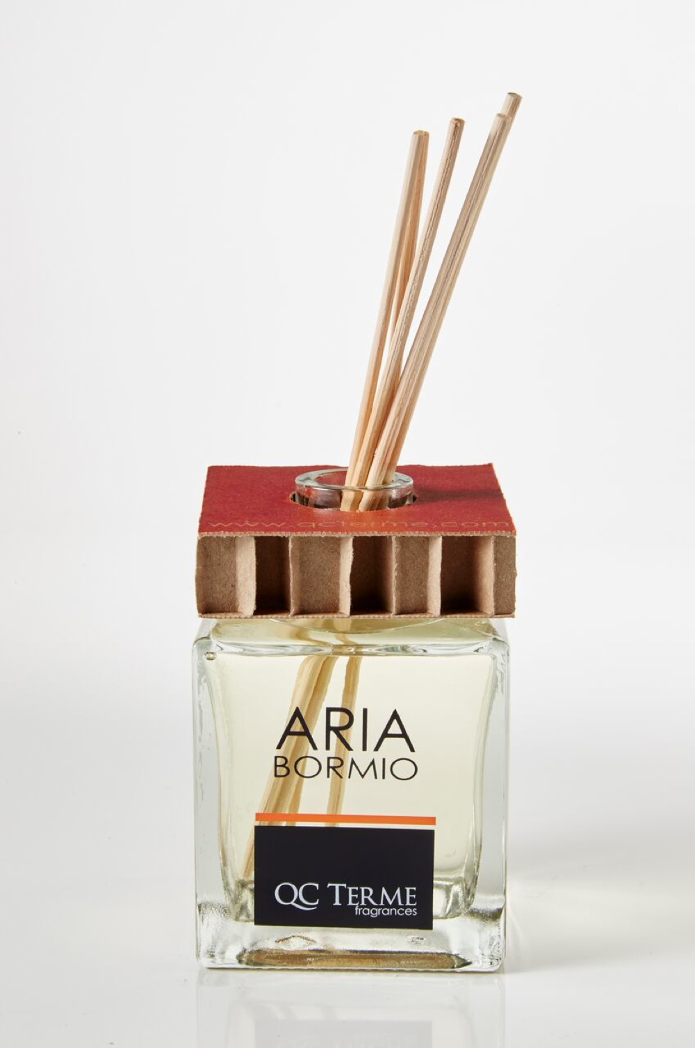 Note di pino silvestre, rosmarino, artemisia e pino cembro: fresca e legnosa, la candela rimanda all’atmosfera del QC Terme di Bormio, circondato da montagne e natura.