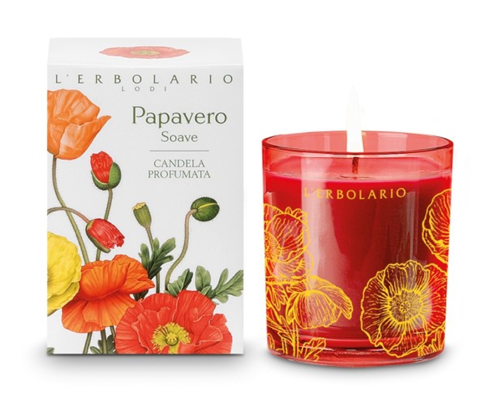 Ricorda un campo fiorito in primavera la candela Papavero de L’Erbolario la cui profumazione è delicata e dolce.