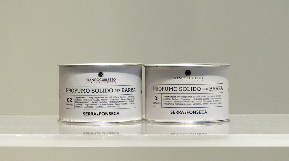 1. Serra & Fonseca. Il progetto di profumi solidi nasceva già un anno fa. Ora è partita una collaborazione creativa con il guru del’hair-styling Franco Curletto: le fragranze al vetiver e al narciso sono diventate un profumo solido per modellare delicatamente la barba. In più, il burro di karitè nutre anche i più ‘ispidi’.