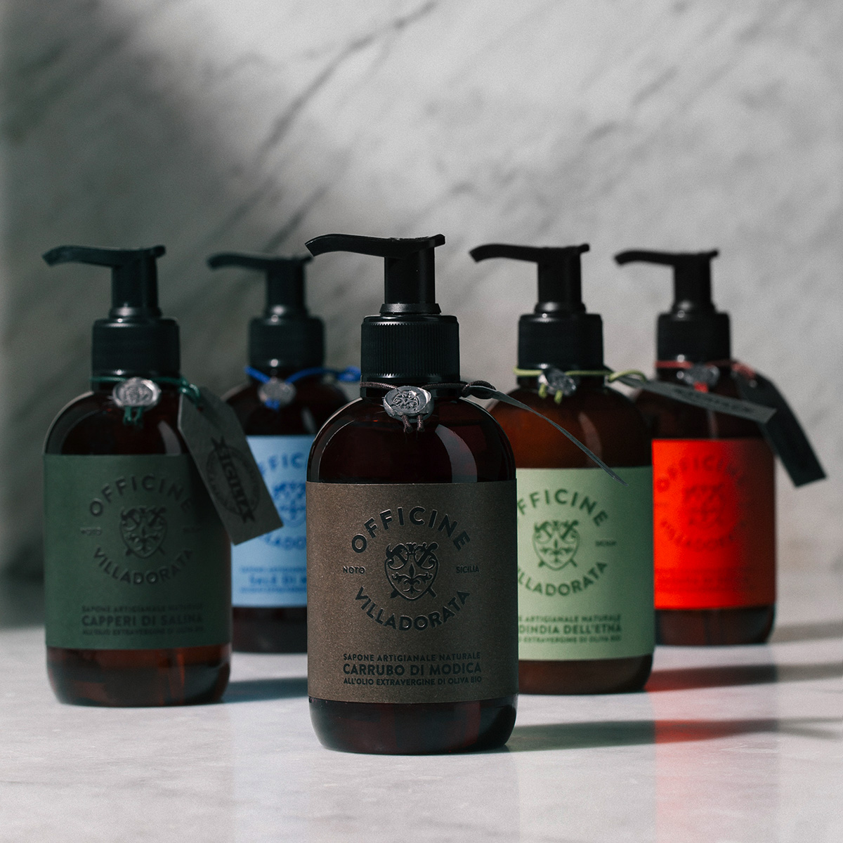 Le materie prime. Le materie prime utilizzate per la creazione dei saponi Villadorata provengono esclusivamente dal territorio siciliano, come ad esempio i capperi di Salina, la pomice di Lipari, la lava vulcanica di Stromboli e la mandorla di Noto. Le migliori materie siciliane si uniscono quindi all’olio extravergine di oliva biologico, contenuto in quantità elevatissima nell’impasto base (80% nel sapone solido e 90% in quello liquido), che rende questi saponi estremamente idratanti e nutrienti.