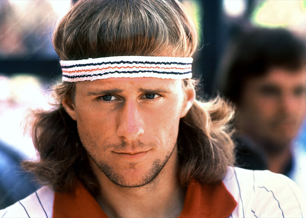 Björn Borg, fascetta in testa e folti capelli alle spalle a cavallo tra gli anni Settanta e Ottanta (Getty Images)
