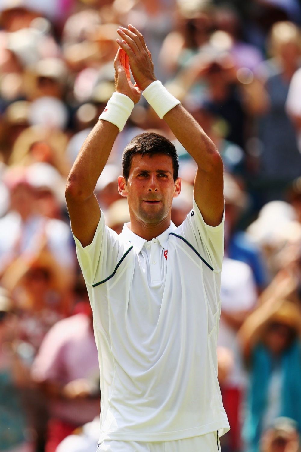LONDON, ENGLAND – JULY 01: Novak Djokovic of Serbia celebrates victory in his Gentlemens Singles Second Round match against Jarkko Nieminen of Finland during day three of the Wimbledon Lawn Tennis Championships at the All England Lawn Tennis and Croquet Club on July 1, 2015 in London, England. (Photo by Clive Brunskill/Getty Images)