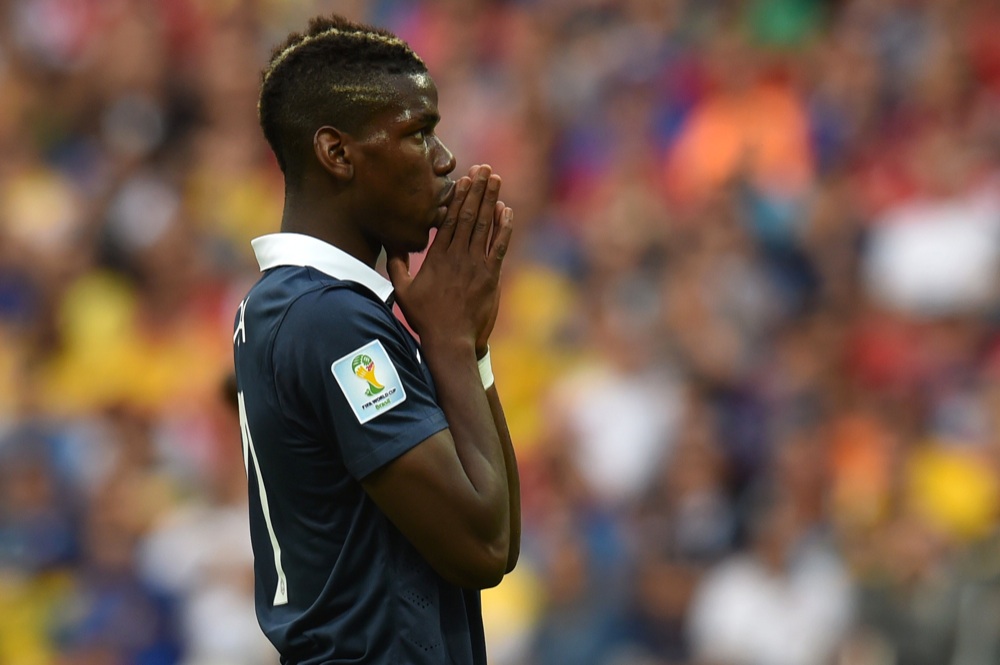 France’s midfielder Paul Pogba gestures during a Group E football match between France and Honduras at the Beira-Rio Stadium in Porto Alegre during the 2014 FIFA World Cup on June 15, 2014. AFP PHOTO / RODRIGO ARANGUA