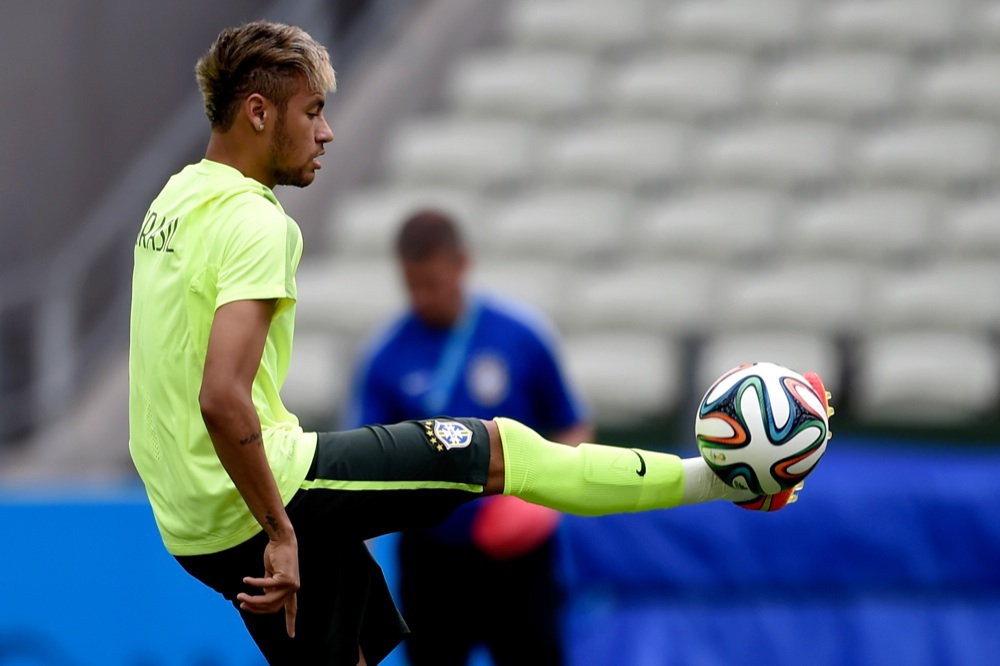Brazil’s forward Neymar attends a Group A football match between Cameroon and Brazil at the Mane Garrincha National Stadium in Brasilia during the 2014 FIFA World Cup on June 23, 2014. AFP PHOTO / FRANCOIS XAVIER MARIT
