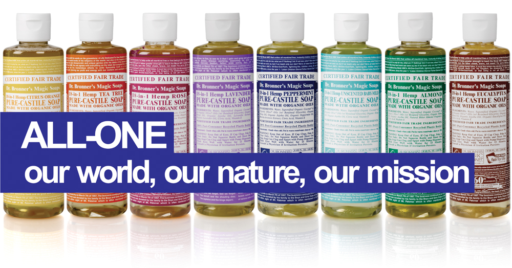 4. Il più eco-sostenibile. Il più eco ma sicuramente anche il brand più colorato quello del Dr Bronner, che a ogni colore dei suoi saponi associa uno degli ingredienti che lo caratterizzano: il verde corrisponde alla mandorla, il giallo agli agrumi, il lilla alla lavanda. L’idea di ‘un commercio responsabile che rispetti uomo e natura’ era la filosofia del suo fondatore, Emanuel Bronner, ebreo tedesco emigrato negli Stati Uniti alla fine degli anni Venti, che rimane ancora oggi la priorità del brand.