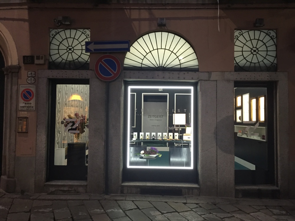 Un nome insolito, che significa “lo spirito del tempo”, per il nuovo indirizzo di fragranze di nicchia situato nel distretto delle 5 Vie. L’idea è quella di un salotto milanese, arredato con poltrone di design e coffee-table book da sfogliare nell’attesa, in cui potersi perdere annusando le novità del settore di marchi che giungono in Italia anche per la prima volta, come Min New York.