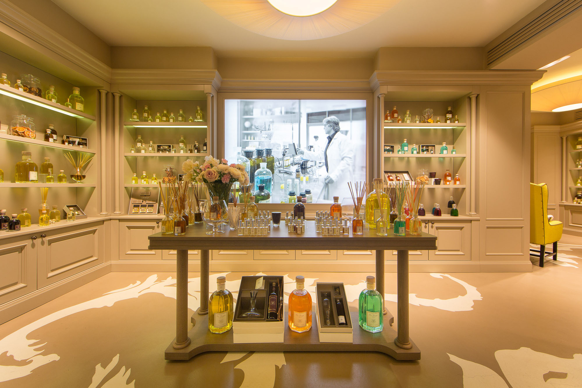 Il dettaglio in più: la Olfactive Wall, una parete che permette di far conoscere le materie prime usate per i profumi, e la presenza di etichette ricercate.