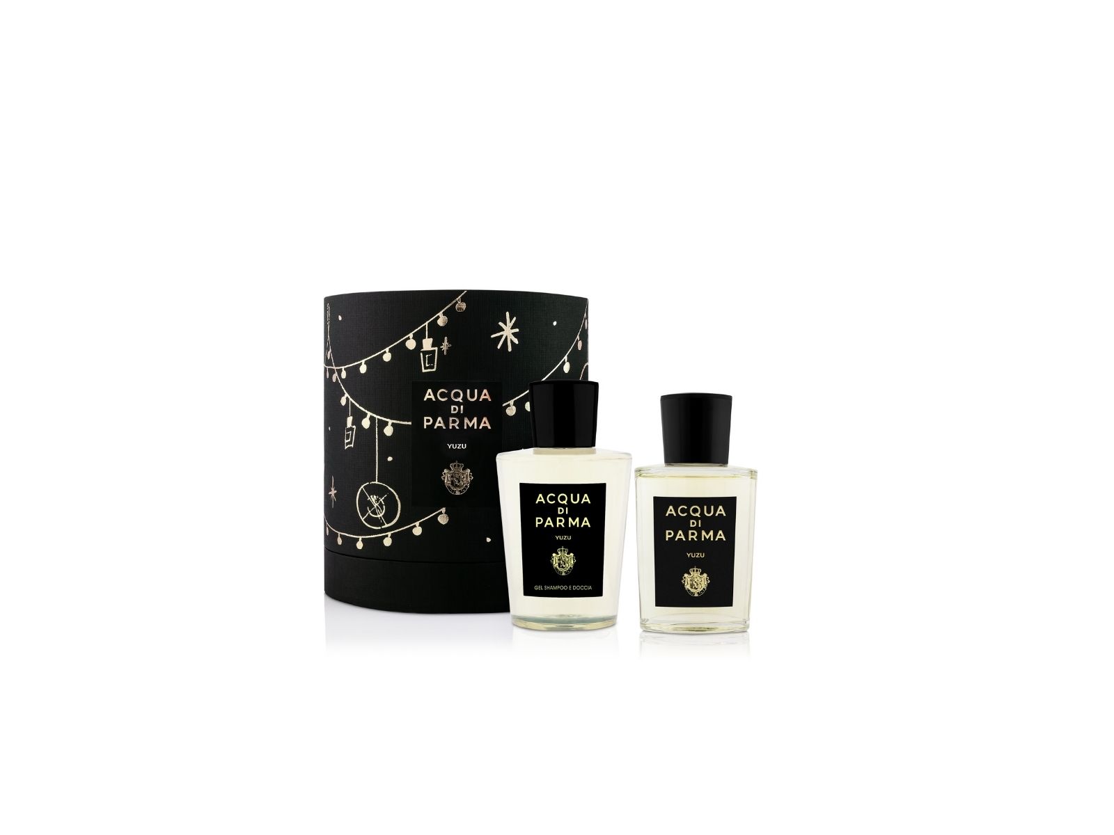 Le nuove cappelliere di Natale di Acqua di Parma sono decorate con lucine e decori natalizi e contengono i grandi classici del marchio italiano