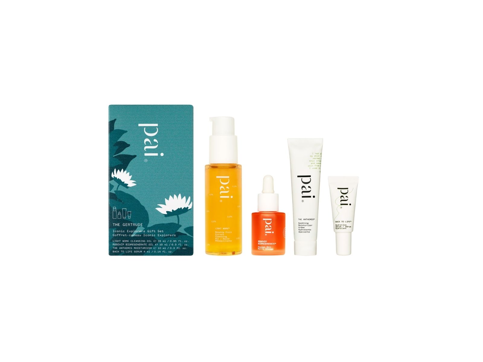 Ispirato all’archeologo e avventuriero Gertrude Bell, il cofanetto The Gertrude di Pai si prende cura del viso e contiene olio struccante, olio viso universale, siero idratante e crema idratante e lenitiva