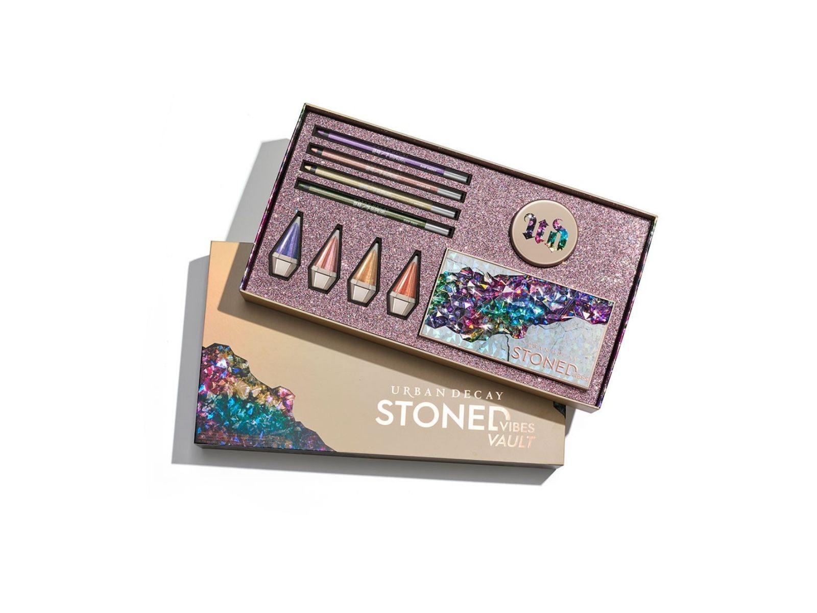 Lo Stone Vibes Vault fa parte della Stone Holiday Collection di Urban Decay ed è un cofanetto in edizione limitata ispirato alle pietre preziose, vegano e con all’interno matita per occhi, lip gloss e illuminante.