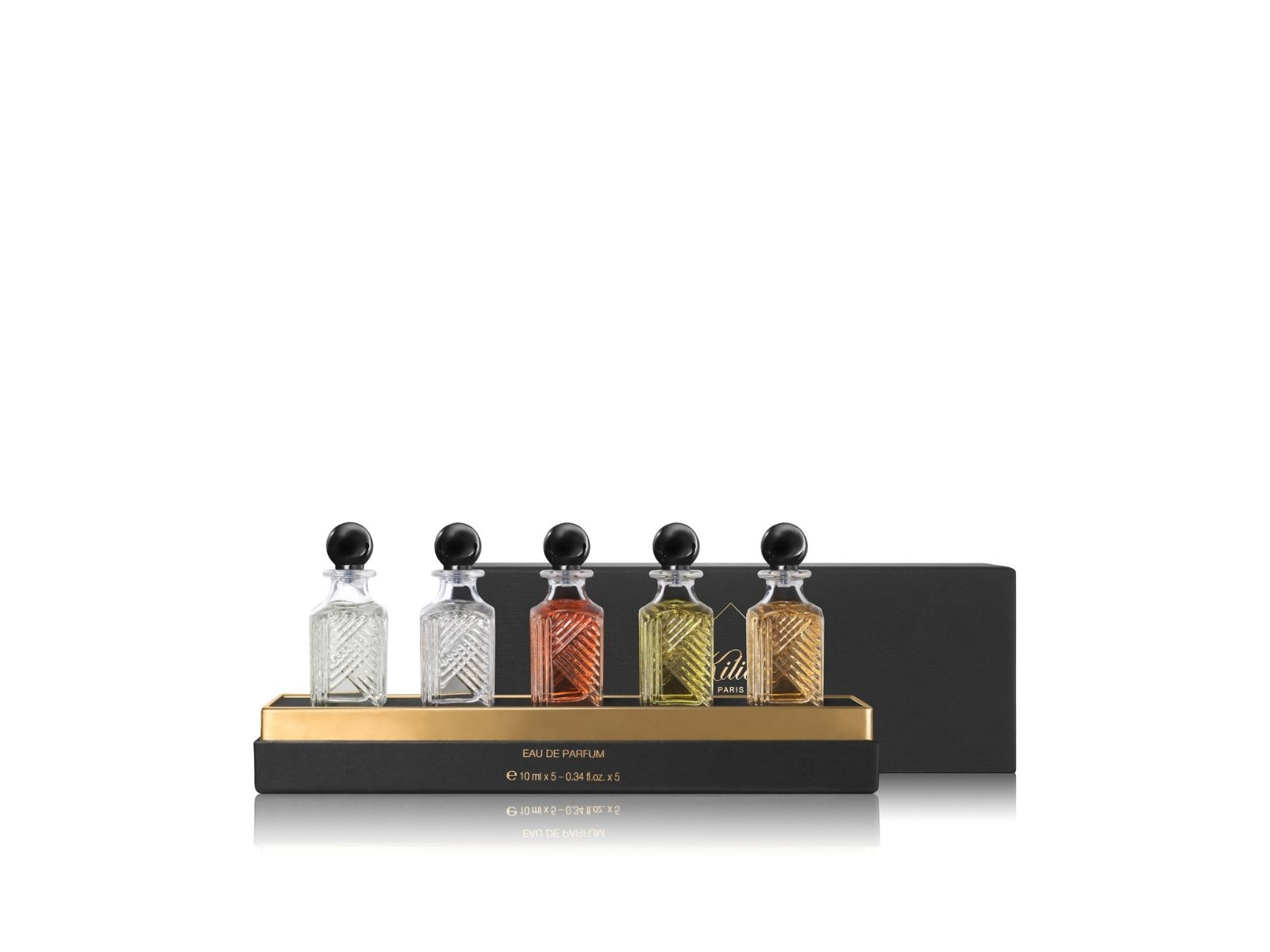 Il Miniature Set di By Kilian contiene cinque delle fragranze più iconiche della maison francese, tutte contenute nelle mini versioni delle classiche caraffe del marchio realizzate in cristallo.