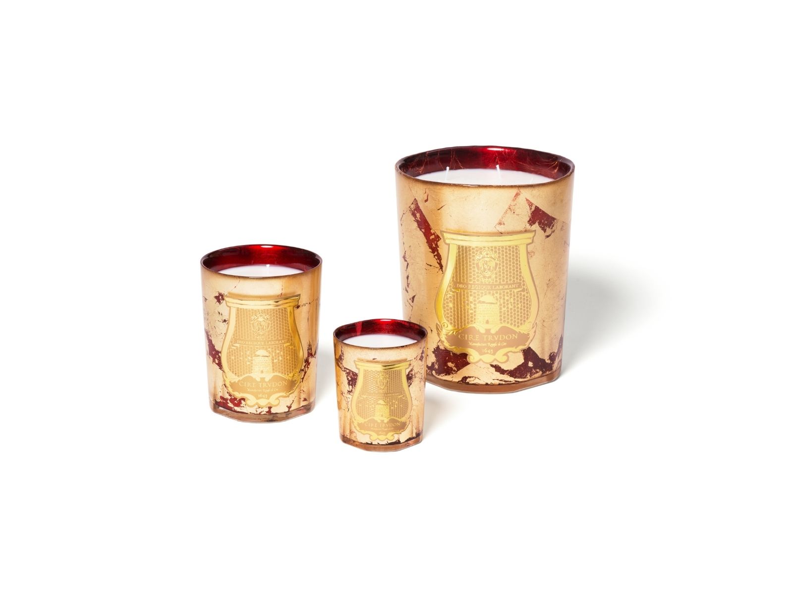 La collezione delle bougie natalizie di Cire Trudon si ispira ai souk marocchini. Cinque candele, Abd el Kader, Ernesto, Gloria, Fir e Gabriel contenute in un vetro decorato con foglie d’oro e ispirato alle lampade marocchine