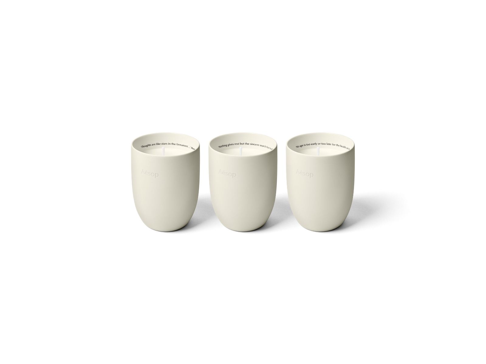 Aēsop Home Care è la prima collezione di candele del marchio australiano. Le tre candele sono ispirate al mondo dell’astronomia e sono Ptolemy, Aganice e Callippus
