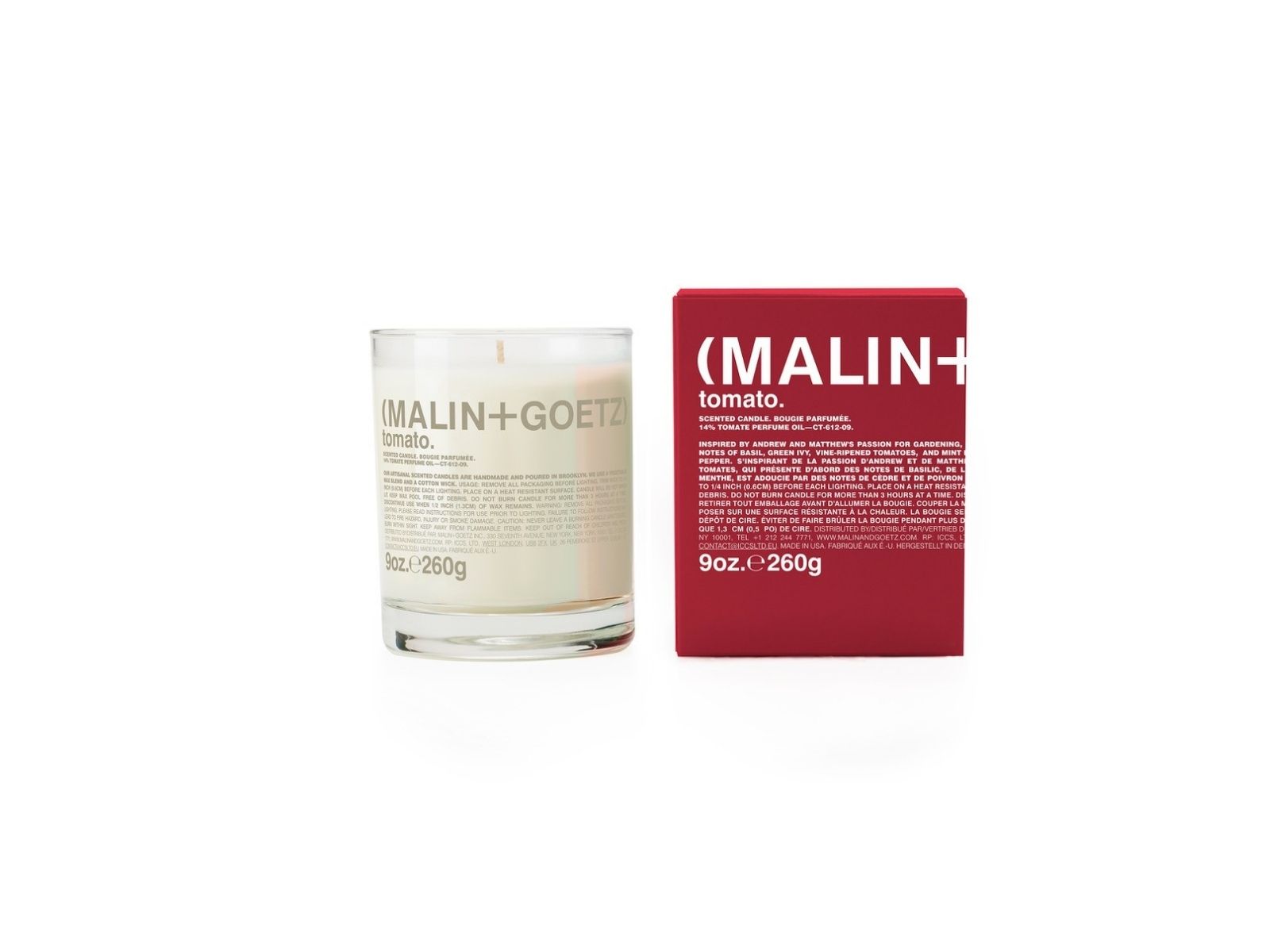 Tomato Candle di Malin+Goetz cattura l’aroma del pomodoro di agosto, assieme alla menta e al basilico, per riassaborarlo anche a Natale