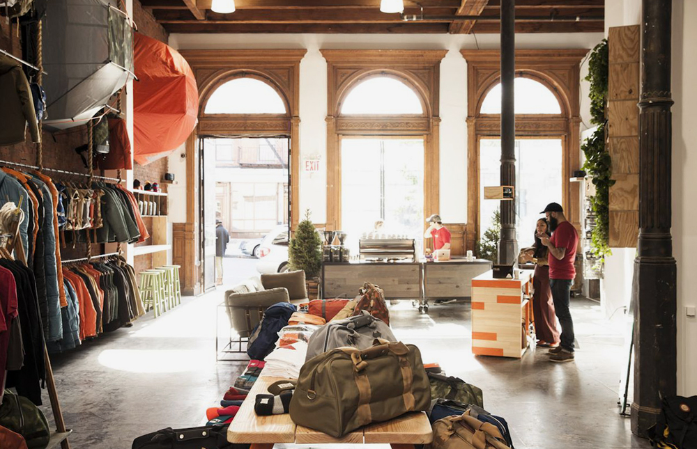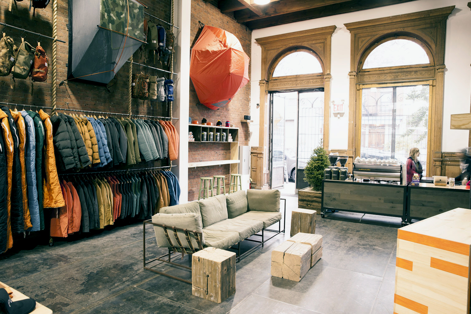 Alle pareti tende da campeggio, sacchi a pelo e giacconi, borracce e zaini sportivi; in fondo un corner in cui spuntano due iconiche poltrone da barbiere. Rudy’s Barbershop da Seattle arriva a New York, Williamsburg, e si trasforma in un negozio specializzato in camping e vita outdoor. (Leggi qui, la storia dei Rudy’s in America)
