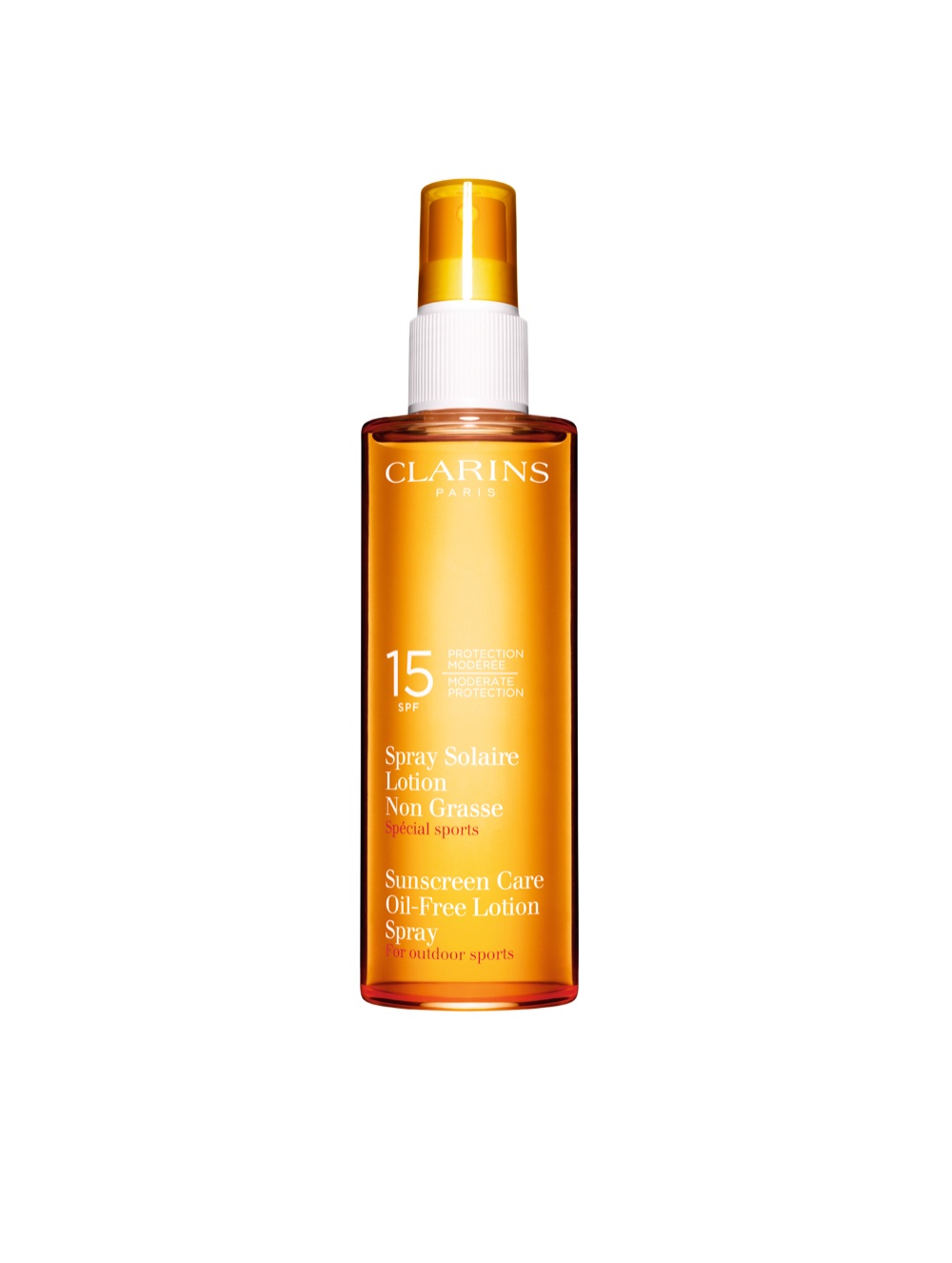 È un olio secco lo Spray Solaire Huile Embellissante Corps et Cheveux di Clarins, pratico per chi pratica sport all’aperto perché protegge corpo e capelli dal sole.
