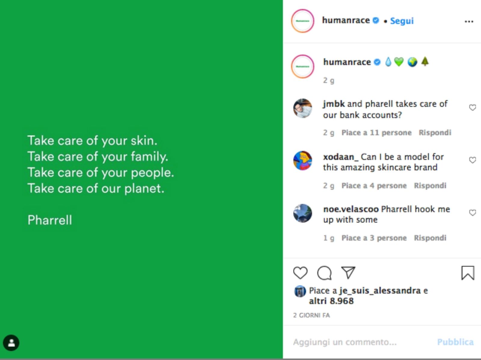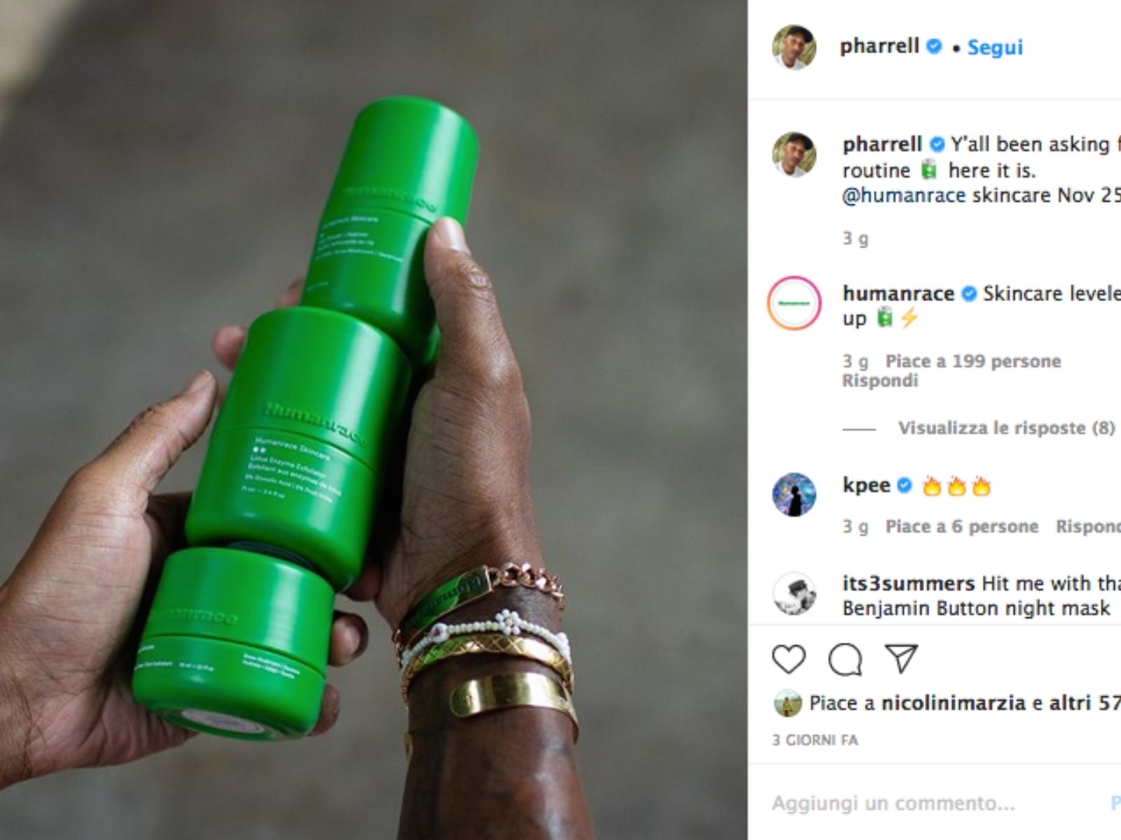 Esce oggi, 25 novembre, Humanrace la prima linea di skincare di Pharrell Williams. Pensata per tutti, senza limiti di età, genere e razza, e presentata in anteprima sul suo profilo Instagram, la linea nasce dalla sua personale ossessione verso lo skincare e dal trovare una routine essenziale e adatta a tutti.