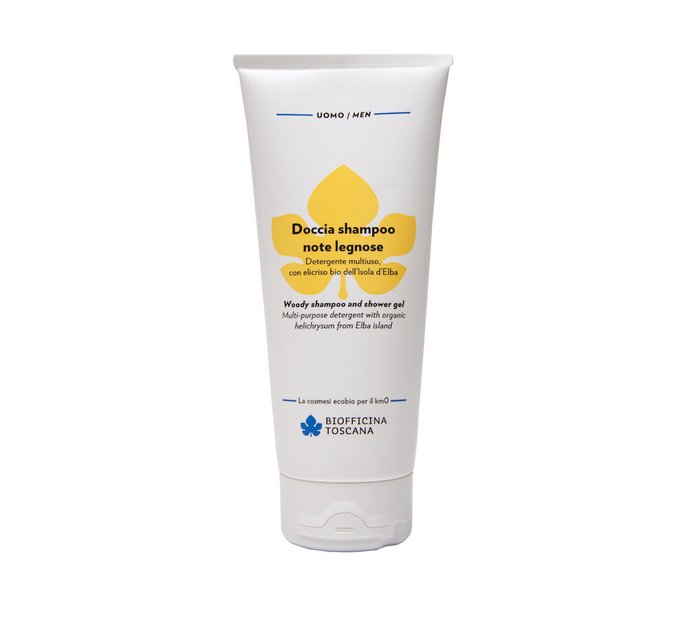 BIOFFICINA TOSCANA Doccia shampoo – Questo detergente multiuso per viso-corpo-capelli e barba, è perfetto da portare in vacanza ed è a base di delicati tensioattivi di origine vegetale. Contiene l’estratto di elicriso bio dell’Isola d’Elba dalle proprietà dermopurificanti, lenitive, protettive-rigeneranti ed emollienti, e diffonde un fresco aroma speziato.