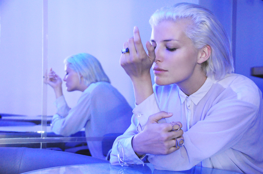 Esther Perbandt, fashion designer. Il suo corpo unisce eleganza, atletismo e uno stile androgino ricercato. Il suo concetto di profumo: essere trasportata in un’altra dimensione e in un’altra epoca, passata futura.