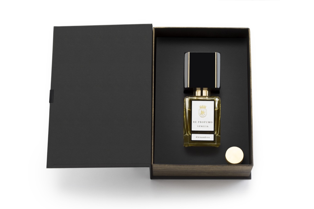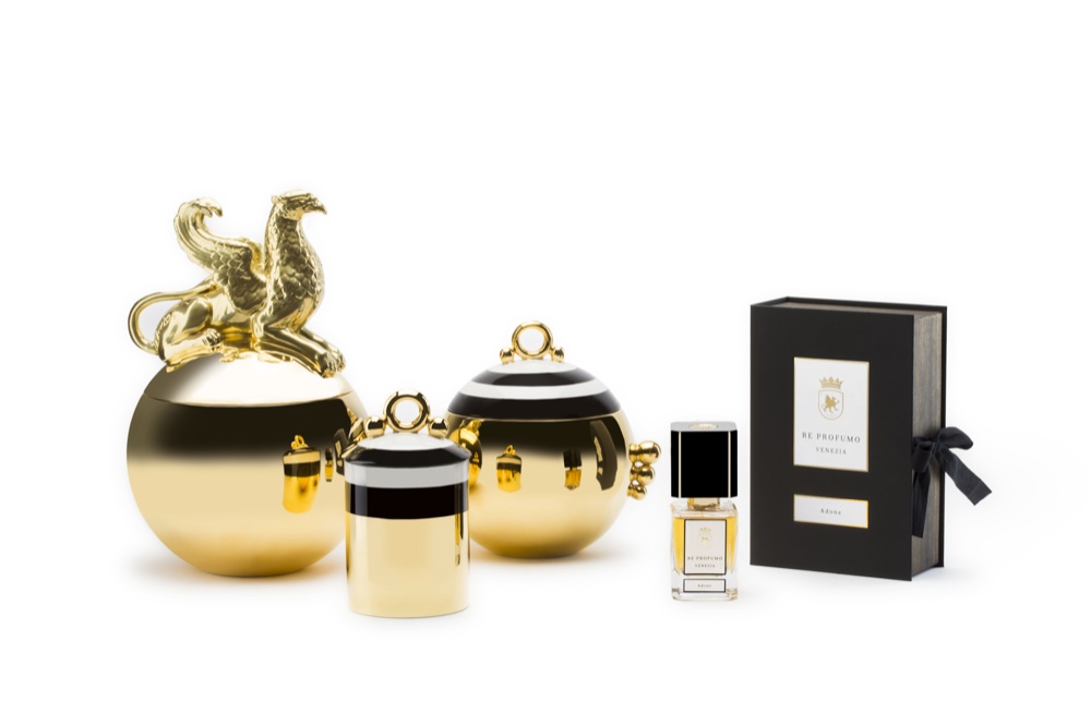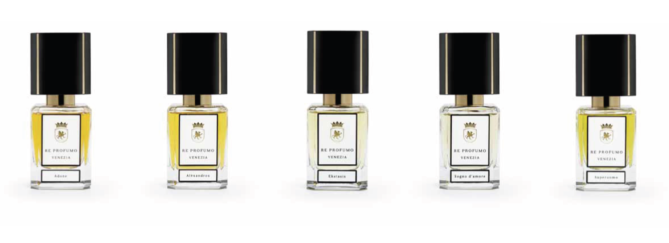 Con la stessa bellezza espressiva, è stata progettata una collezione di profumi firmata Re Profumo, cinque essenze distribuite in Italia da Intertrade Europe, che evocano la classicità greca e Nietsche, alternativamente. Alexandros è un mix di cardamomo, incenso, gelsomino e sandalo; Adone unisce rosa, legno di ambra e vetiver; Ekstasis gioca con tubrosa, fava tonka e vaniglia; Sogno d’Amore passa da limone a lillà fino a muschio mentre Superuomo alterna pepe rosa, mirra e neroli.