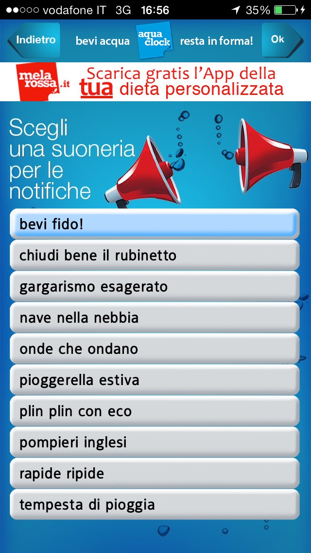 Come funziona. Degli alert personalizzati (sirena del pompiere, le onde del mare, la pioggia, e altre divertenti suonerie) ricordano, durante la giornata, quanto e quando bere per prevenire la disidratazione.