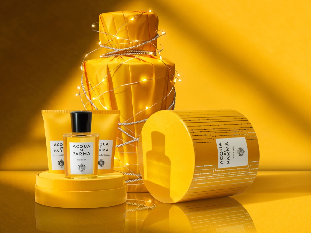 La tonalità particolare di giallo che contraddistingue il marchio italiano illumina la cappelliera natalizia. All’interno la classica collezione composta dalla celebre colonia, dalla crema alla colonia e dal bagno alla colonia. Un tris adatto agli appassionati del genere.