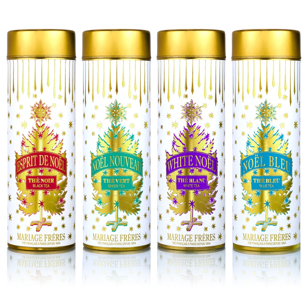 La profumazione è ormai quella classica del tè Noël declinato in quattro versioni: tè nero, bianco, verde e blu e contenuto in latte circolari con uno sfavillante albero di Natale.