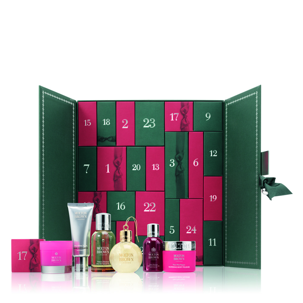 Nei tipici colori natalizi del rosso e del verde, il calendario dell’Avvento firmato Molton Brown racchiude in ogni pacchetto un prodotto, per il corpo o per la casa. 24 regali, confezionati singolarmente.