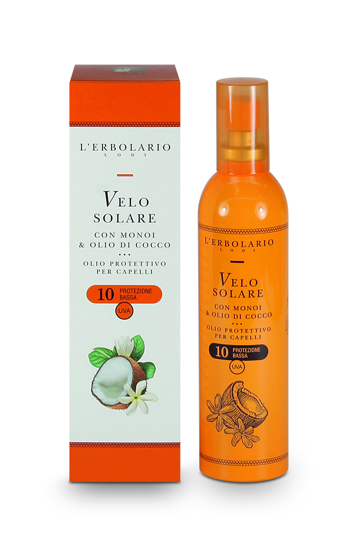 5) Spray impalpabile che protegge i capelli dalle aggressioni degli agenti esterni grazie all’azione dell’olio di monoi e cocco: Velo Solare di L’Erbolario.