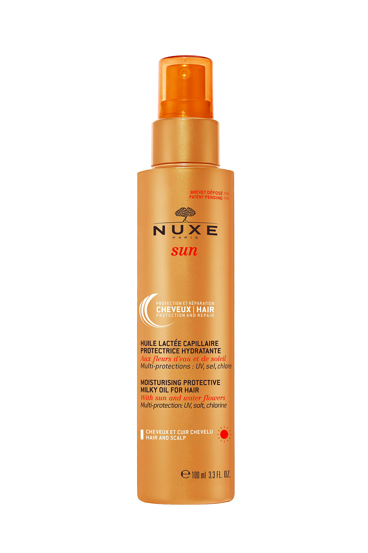 6) Tre filtri solari ed un estratto di proteina di riso per difendere cuoio capelluto e capelli dagli effetti dannosi di sole, cloro e salsedine: Nuxe Olio latte per capelli protettivo idratante.