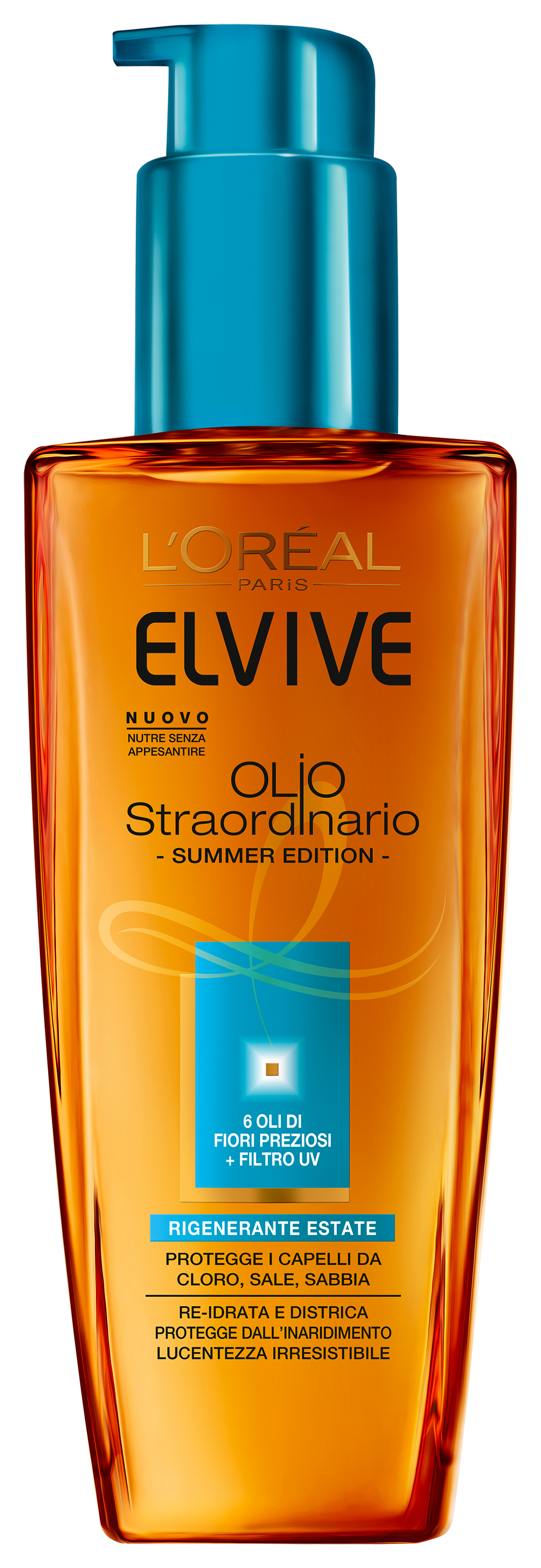 4) Sei oli estratti da preziosi fiori, che nutrono e idratano i capelli aggrediti dagli agenti atmosferici: L’Oréal Paris Elvive Olio Straordinario Rigenerante Estate.