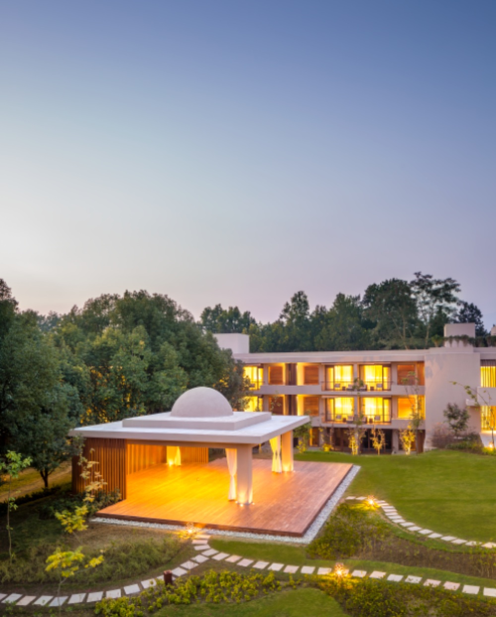 Ritiro spirituale ma anche di benessere, il Vana Malsi Estate si trova sul confine col Nepal ed è interamente costruito con materiali ecosostenibili. All’interno, accanto alla classica palestra, una spa specializzata in ayurveda e in medicina tibetana, una sala yoga e di meditazione e una grande piscina in cui poter praticare Tai-chi in acqua. Sono presenti 11 diversi tipi di programmi, detox-beauty-fitness-relax, a secondo delle esigenze personali.